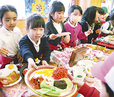 川和町の都筑ヶ丘幼稚園(柏木照正園長)で9日、恒例行事「お店屋さんごっこ」が行われ、未就園児や園児ら約500人が参加した。