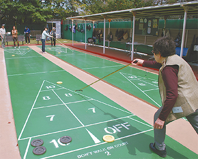 横浜シャッフルボード協会(古宇田圭祐会長)主催の「シャッフルボード無料講習会」が4月15日、葛が谷公園で行われた。