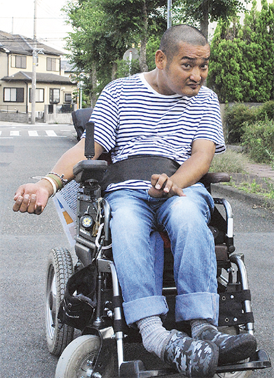 現在、荏田東のアパートで一人暮らしをしている田所さんは、スムーズな会話や細かい指先の動きが思うようにいかない。重度の肢体不自由者などが受ける重度訪問介護サービスを利用。ほぼ24時間、ヘルパーによる身体介護や家事援助、移動介助など、身の回りのサポートを受けている。室内では両膝を着いて四つんばいで移動し、外出時には電動車椅子で電車やバスに乗ることもあるという。