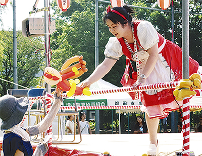 会場には模擬店が並び、地域住民を中心に多くの来場者が列をなした。ステージでは都田中生らがソーラン節など多彩なパフォーマンスを披露。お笑い芸人・カルーア啓子さんが軽快なトークを織り交ぜながら披露したバルーンショーでは喝采が沸いた。