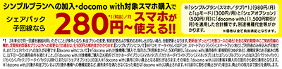 2つ目は初心者でも操作しやすい対象2機種のいずれかを購入すると、毎月1500円割引になる「ドコモウィズ」。この2つのプランを併用すれば月額280円〜、スマホ利用が可能になる。機種変更するまでこの価格が適用されるので、同じスマホを長く使うほどお得になるという仕組みだ。