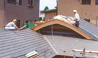 そこで、今回紹介したいのが、都筑区東山田町にある屋根・外壁の専門店「(有)明板金工業所」。同社の歌川明代表は、設立50年を迎えた神奈川県板金工業組合の理事を20年務めた板金のスペシャリストだ。その高い技術を買われ、東京駅駅舎のドームや小田原ヒルトンホテルのチャペル、鎌倉女子大学キャンパスの屋根工事に加え、地元では都筑スポーツセンター、横浜国際競技場(施設棟)などの改修を手掛けてきた。