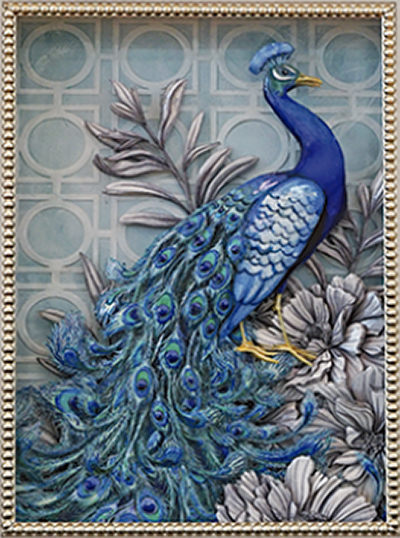 シャドウボックスとは、複数枚の絵をパーツ毎にカットし、丸みや表情をつけながら重ねて2次元の絵に命を吹き込み、よりリアルな3次元の世界を創り出す工芸。