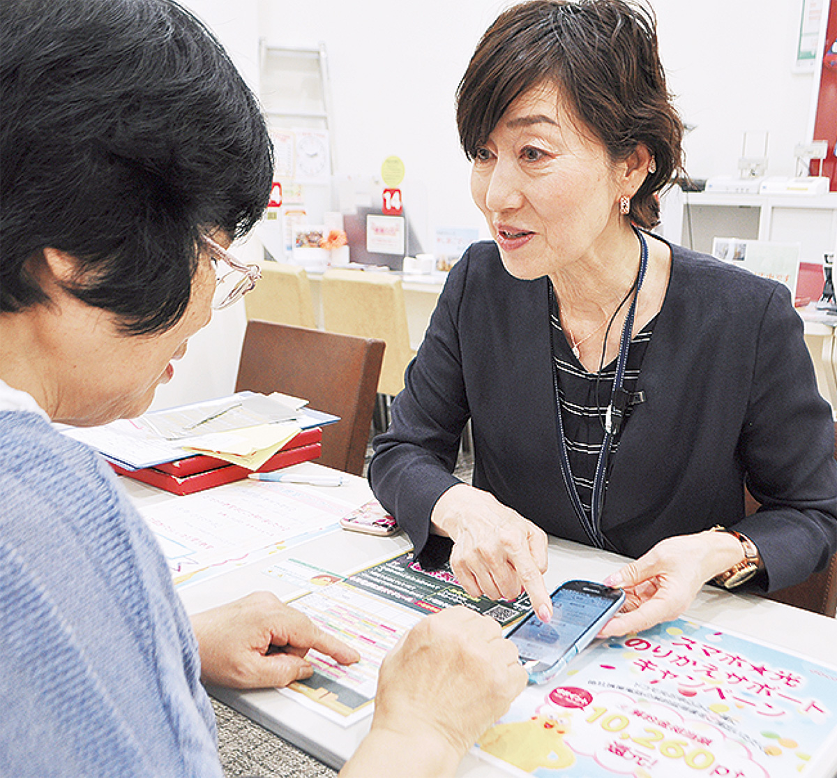 同店スタッフは「主婦やご高齢の方など、快適なスマホ生活を応援するため、私たちは全力でサポートします」と話す。