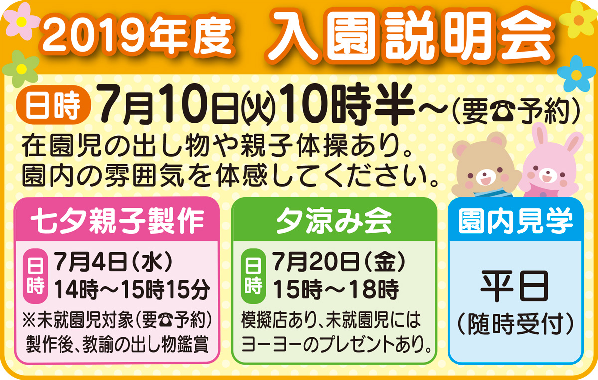 在園児対象の預かり保育や2歳児のプレ保育など子育て世帯の幅広い働き方にも対応している。
