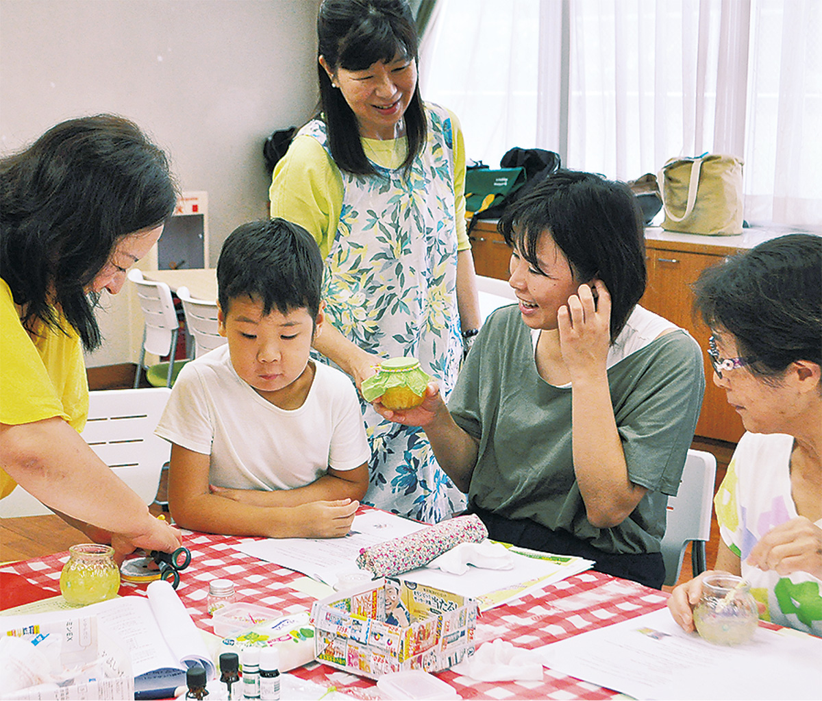 当日は約20人が参加。オリジナルフレグランスボトル作りが行われ、参加者同士で話し合いながら交流する姿が見られた。