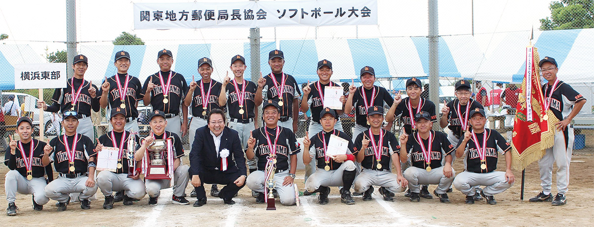 「平成30年度 関東地方郵便局長協会ソフトボール大会」が9月1日、千葉県成田市で開催され、都筑区・青葉区・港北区・緑区・鶴見区・神奈川区・西区の郵便局長約40人で構成された横浜東部チームが4連覇を果たし、10月27日(土)に千葉県千葉市で行われる全国大会への切符を手にした。