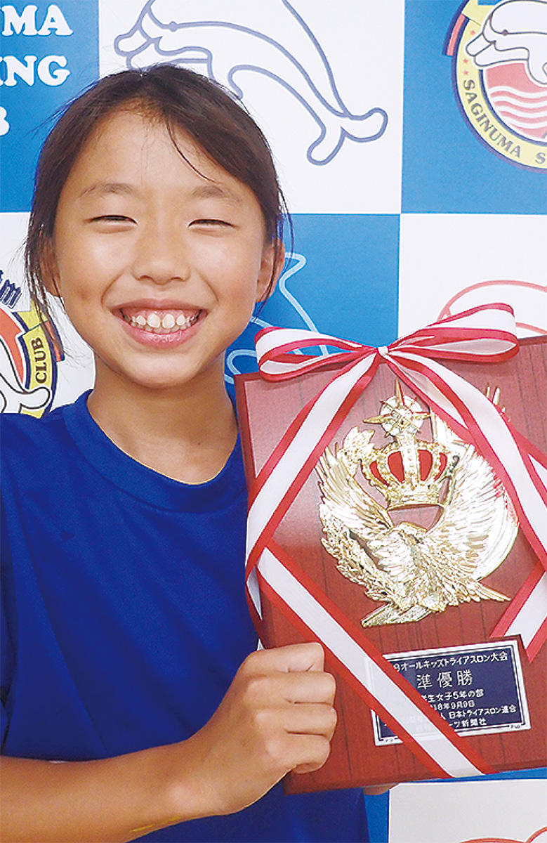 サギヌマスイミングクラブ鷺沼のトライアスロンコースに通う河合春奈さん(東山田小学校5年)が、全国大会で準優勝を成し遂げた。