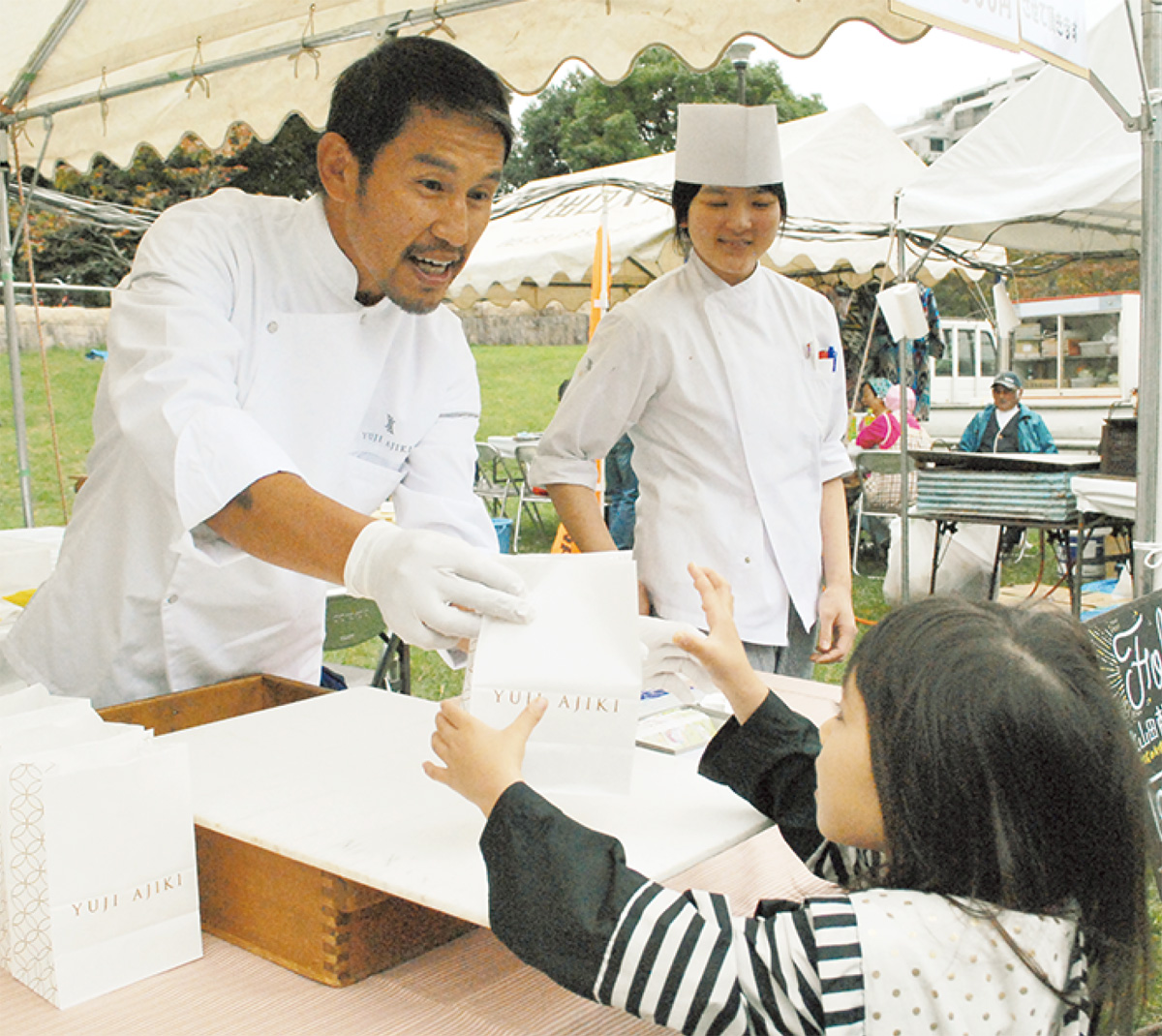 特に人気だったのが有名パティシエ、安食雄二さんの洋菓子店「スイーツガーデンYUJI AJIKI」が秋祭り限定の「スイートポテトパイ」を販売する「YUJI AJIKI 3時のもぐもぐタイム♪」。販売開始1時間以上前から長蛇の列ができており、即完売した。