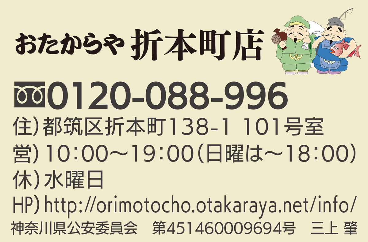 現在、折本町店限定「秋のキャンペーン」を実施中。「タウンニュース見た」と伝えると買取り額10%UP。他キャンペーンとの併用可。臨時収入をゲットし、うれしい年末を過ごしてみては。