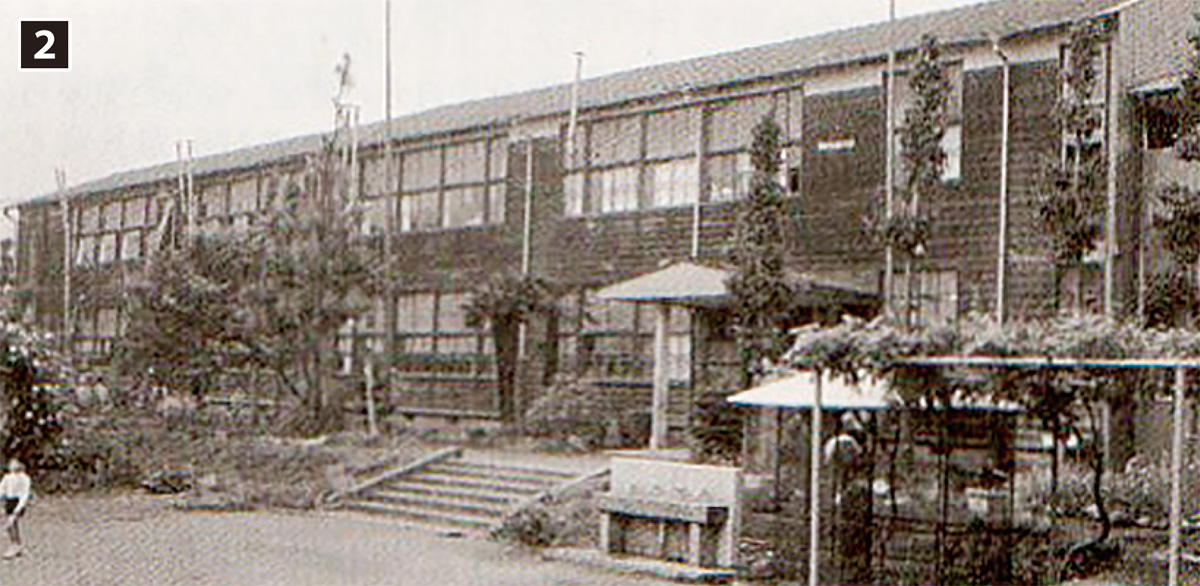 児童数が徐々に増えていき、校舎内も窮屈になってきた55年、現在の校地に分校開校。給食は本校から、リアカーで運ばれていた。58年に本校と分校を統一し、現在の校舎に移転。73年には、木造校舎から鉄筋4階建ての校舎に改修された。