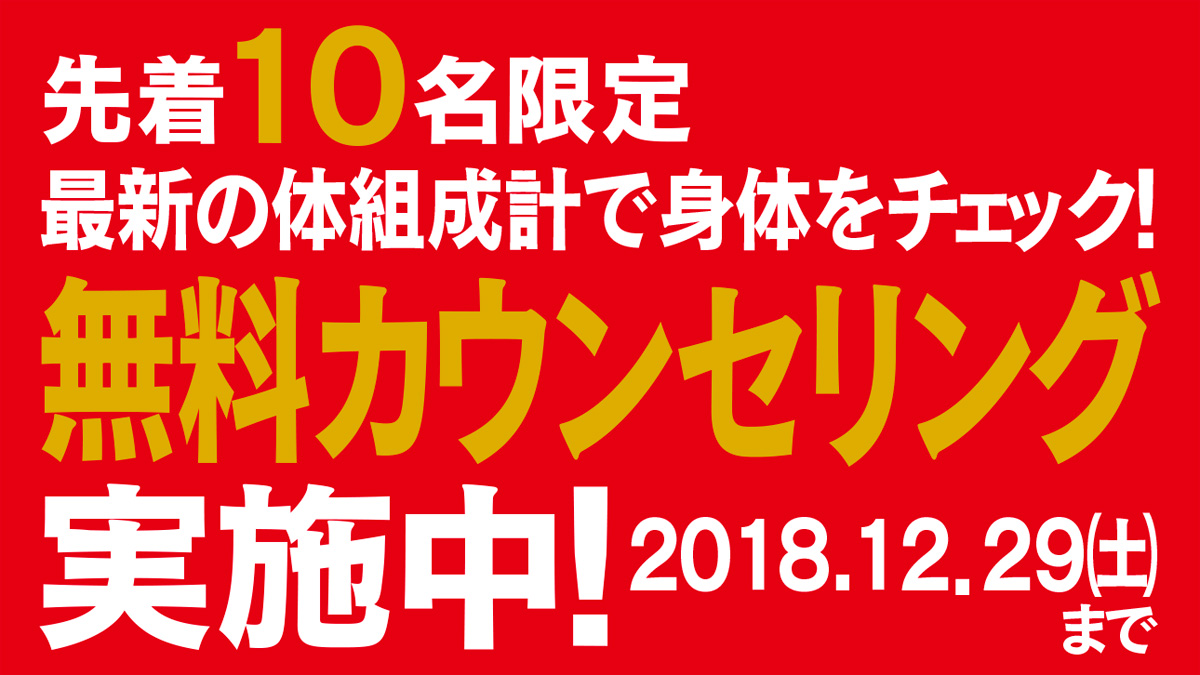 まずはアスリートも使用するという最新の体組成計で体重や体脂肪率、推定骨量などの全身データを30秒で測定。その後、トレーナーが来店者一人ひとりに合ったトレーニングメニューを個別に作成してくれる。無理なく体を動かすことで、肩こりや腰痛、立ち姿勢、疲労改善のほか、ダイエットにも効果があるという。小沼裕介代表は「年末最後のダイエットに挑戦してみませんか?」と話す。