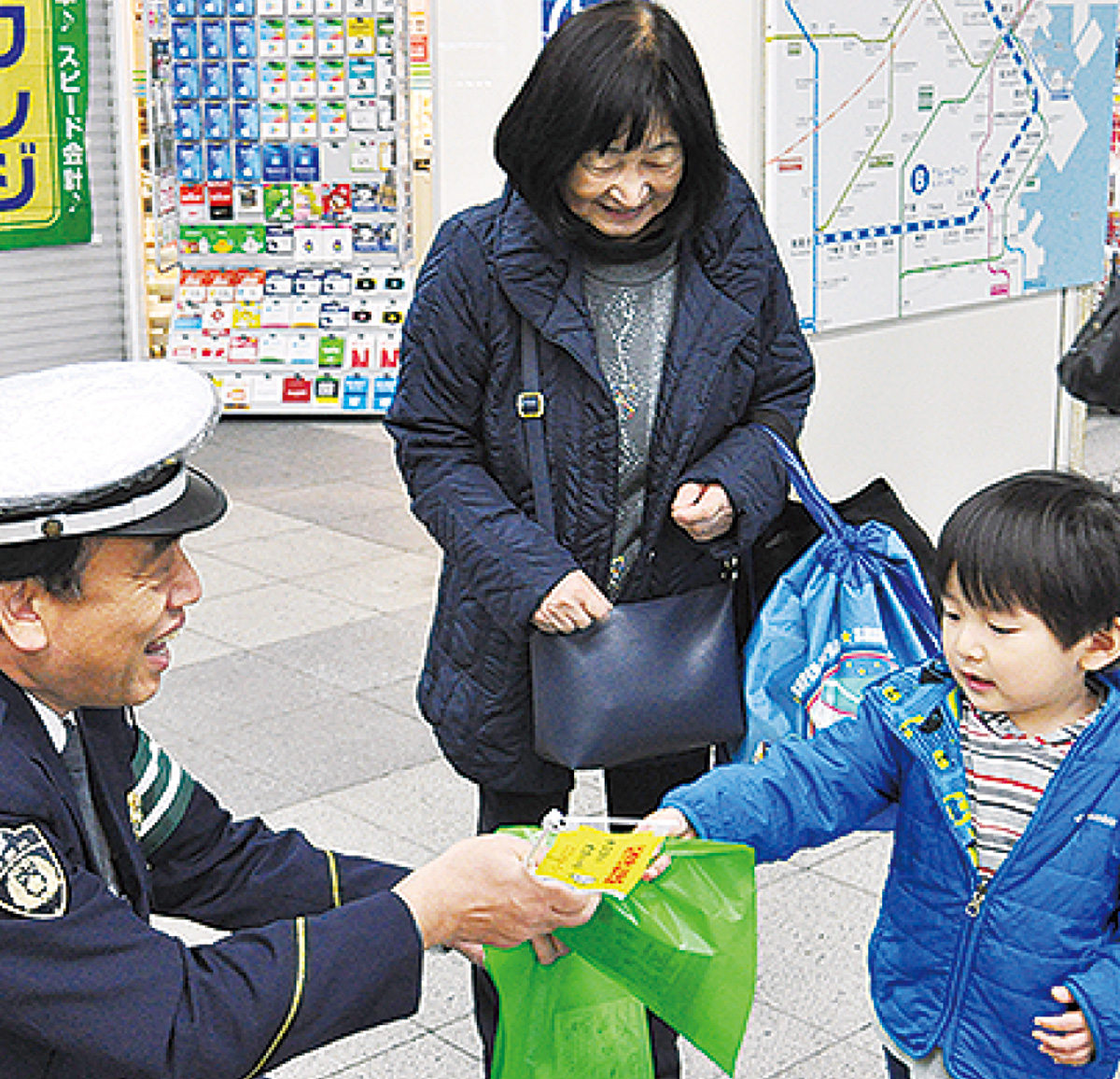 当日は警察団体ら20人が参加。啓発チラシやグッズ約500セットを通行人に配布し、飲酒運転の根絶を呼びかけた。