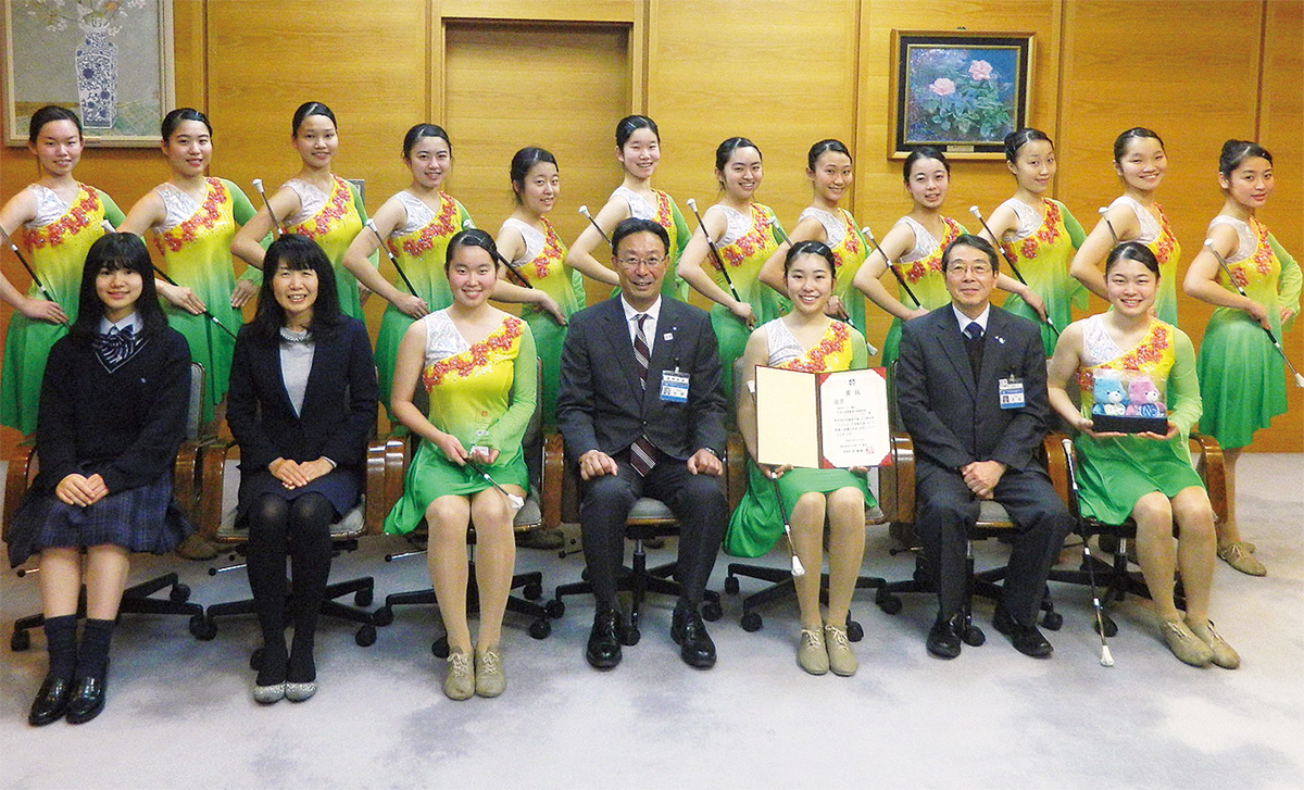 中央大学附属横浜高等学校(袴田兆彦校長)バトン部は1月16日、昨年12月に幕張メッセで開催された全国大会に出場したことを受け、中野創区長に表敬訪問を行った。
