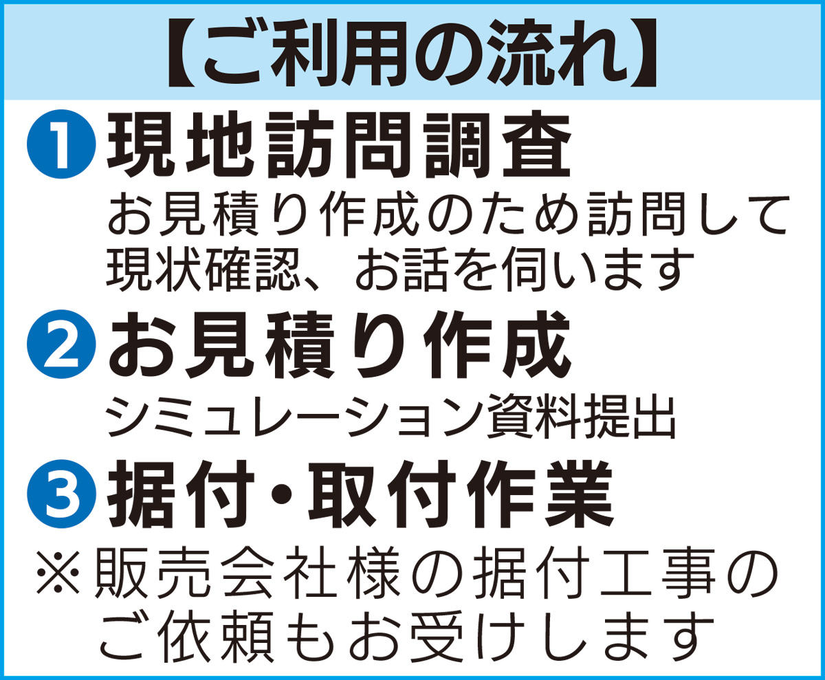 専門のスタッフが直接調査に赴き、ニーズを聞き取って見積りを作成(無料)。据付後をイメージしやすいようシミュレーションを示し、個々の希望に応える最適な提案をしてくれる。据付工事も一貫して自社対応。ビジネス電話を手がけ30年、アフターフォローも万全で、確かな技術で提供するのは「安心感」と「信頼」だ。