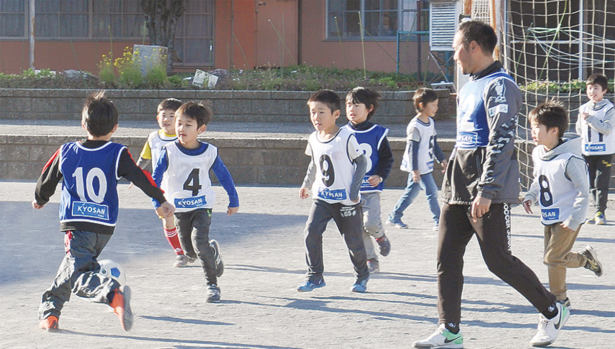 当日は同クラブに所属する山本絵美選手と、長谷篤コーチが荏田南小を訪問。リフティングやドリブルなどの練習をした後は5チームに分かれて総当たりの試合を行った。プロの技を間近で見た子どもは「ドリブルが速すぎる。自分もあんな風になりたい」と、必死に選手に食らいついていた。