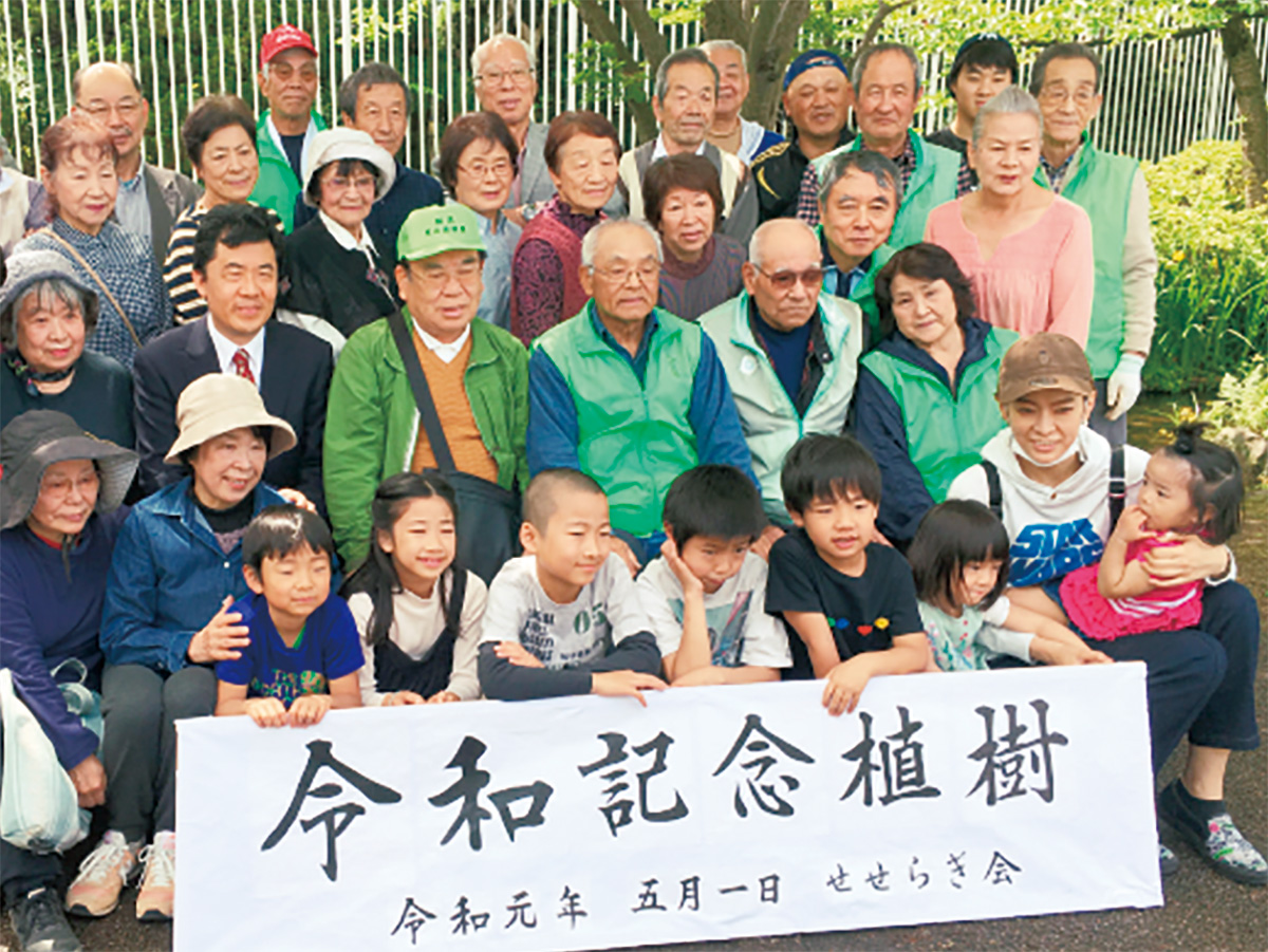 佐江戸せせらぎ水辺愛護会(安部喜平会長)は5月1日の改元に合わせて近隣住民らと「令和記念植樹」を行った。