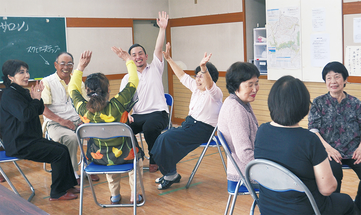 当日は14人が参加。同法人介護老人保健施設若葉が丘職員の佐藤有理さんらがコグニサイズと呼ばれる、頭を使いながら運動するエクササイズを紹介し、参加者らと取り組んだ。佐藤さんは「顔見知りも増えた。何かあった時に頼りになる存在でありたい」と話す。