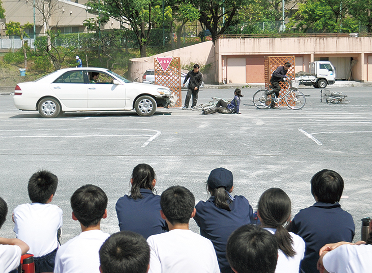 毎年区内の小中学校を中心に行われている体験型教室は、プロのスタントマンが事故の状況を再現することで、被害の大きさや発生しやすい状況を見て学ぶことができ、事故の抑制に効果的であるという。昨年は市内で約2000件の自転車事故が発生したことから二輪車の事故を中心に再現が行われた。