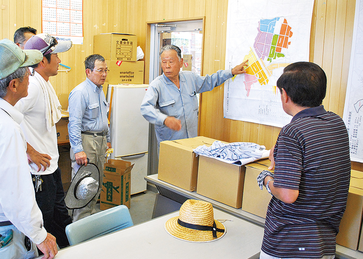 最高気温34度を越えた8月5日午後、地元の農業組合員で同隊隊員9人が集合した。「この前まで自転車が放置されていた」「(循環局裏に)違法駐車がある」「建材が捨てられていた」など、隊員同士が地区内一帯に捨てられた不法投棄物の情報を共有。その後、2グループに別れ軽トラックで回収作業を行った。