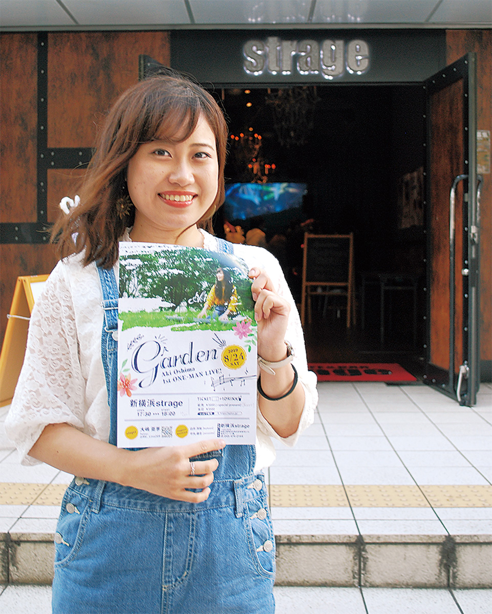 都筑区民まつりやノースポート・モールなどで歌を披露してきた都筑区出身シンガーソングライターの大嶋亜季さん(23)が8月24日(土)に新横浜strageで自身初となるワンマンライブを開催する。