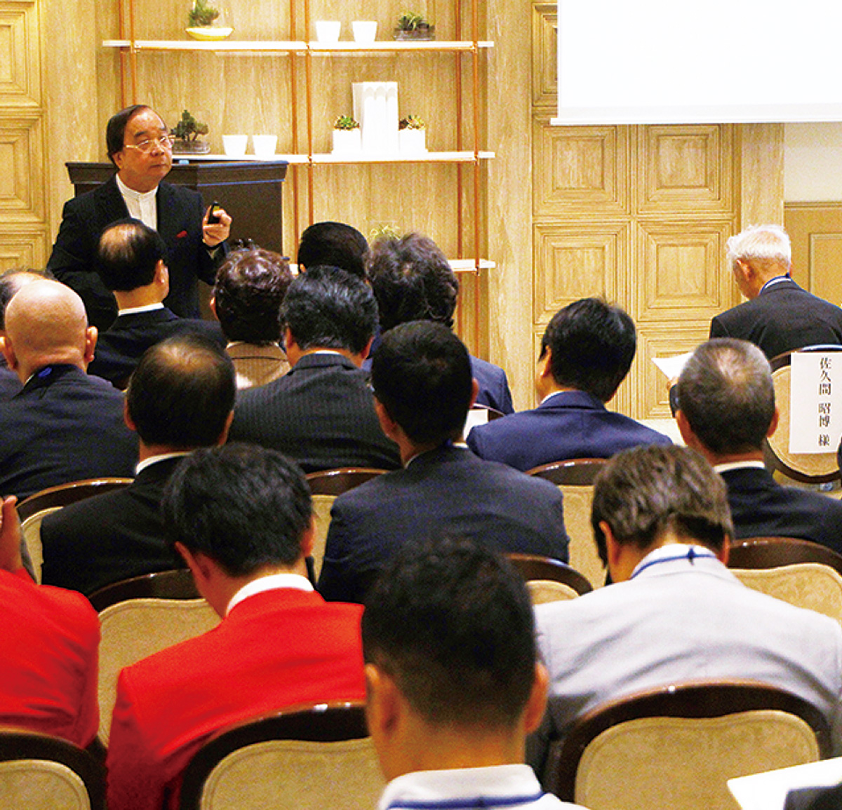 江戸時代の思想家・佐久間象山(1811〜1864)の考え方に共鳴した洋服店「AOKI」を運営するAOKIホールディングス=葛が谷=の青木擴憲会長らが中心になった勉強会が9月25日、中区で行われた。経営者やAOKIのCMにも出演した草野仁さんら約160人が参加した。