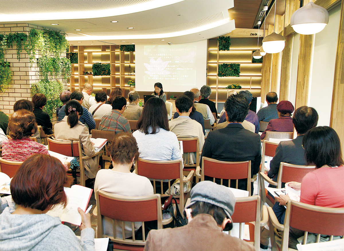 講師のケアコンサルタント、川上由里子さんは介護が必要となる原因の18・7%が認知症だとした上で正しい知識が重要と説明。自身が経験した在宅介護の話に加え、介護制度の説明や普段の接し方なども講演。介護の状況に合った施設の利用についてもアドバイスし、参加者は熱心にメモを取りながら耳を傾けていた。