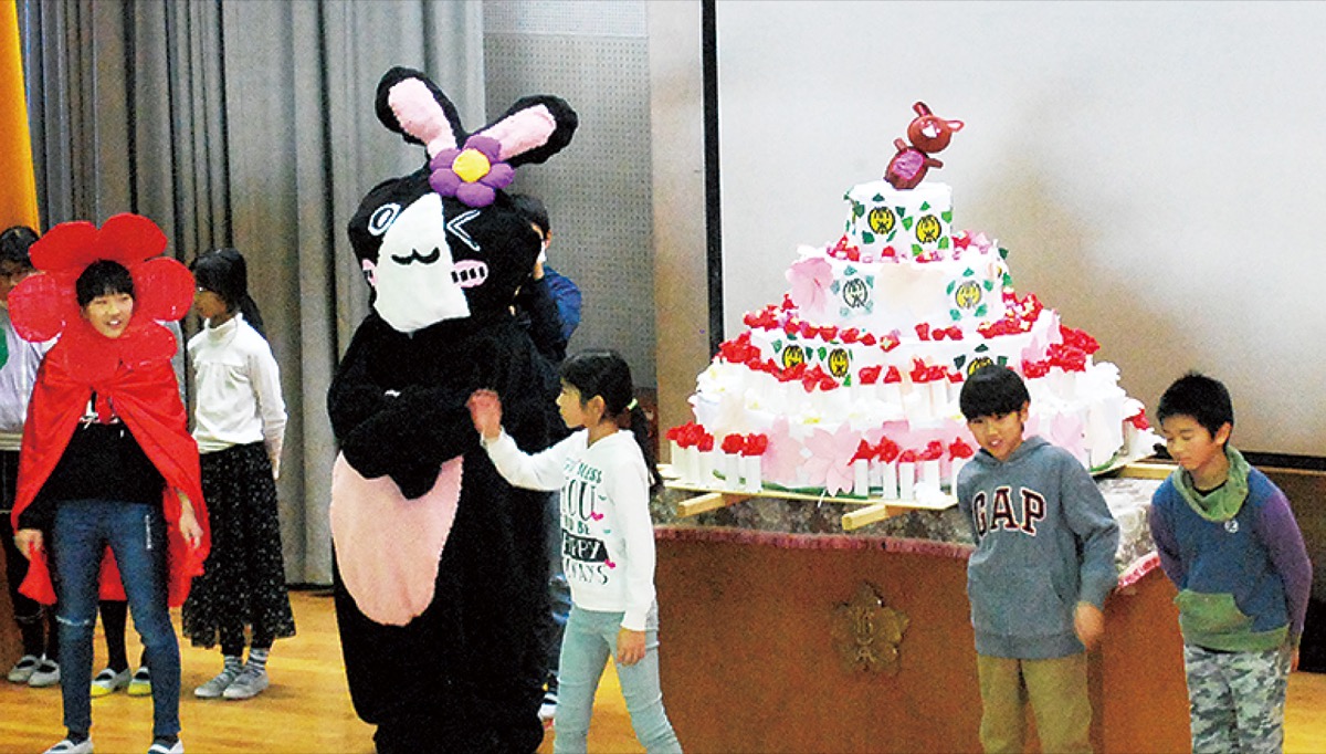 子どもの部は式次第の企画から進行まで児童が担当。各クラスが70周年に向けて取り組んだ成果として伝統芸能「獅子舞」や、記念キャラクターの手作り着ぐるみなどが披露された。大人の部では1期生など地域住民が参加し、映像で歴史を振り返った。榮秀之校長は「子どもが主人公の良き伝統を守りさらに発展していけるよう歩んでいきたい」と話した。