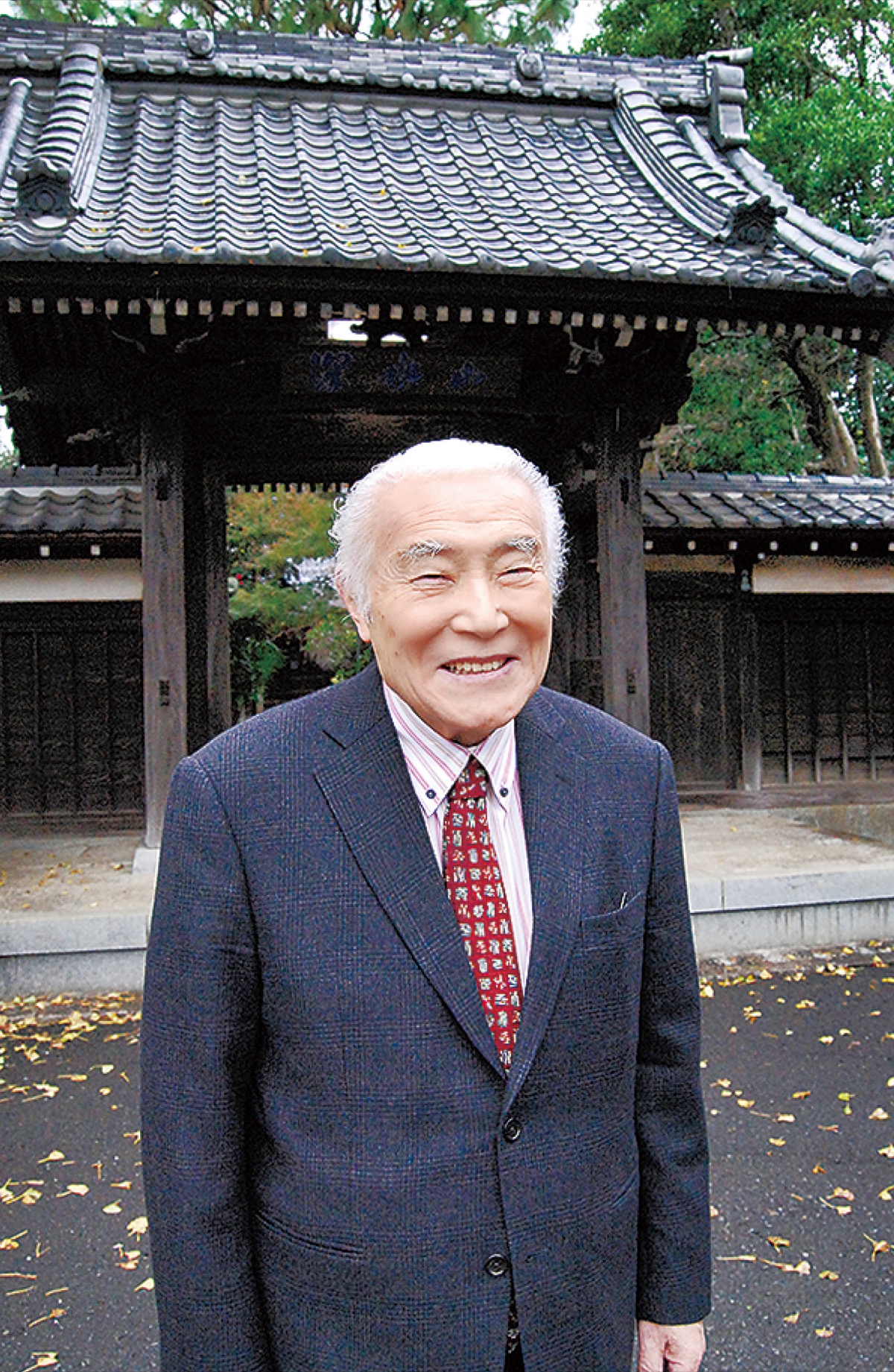 野いばらをモチーフにした折本小の校章―。実は、折本町の真宗大谷派 真照寺の雲井耀一住職(19代)の祖父で17代住職だった故・雲井麟靜(りんじょう)氏が考案したことを知っているだろうか。