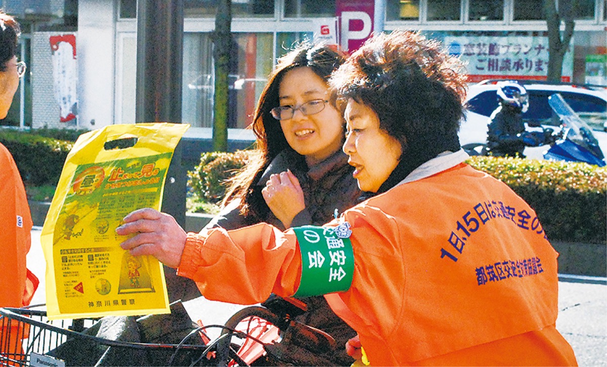 事故を受けて都筑警察署は、10日に中村交差点の歩道で交通安全運動を実施。都筑交通安全協会や都筑安全運転管理者会らのメンバー約30人が啓発チラシや反射材になるキーホルダー等を手渡しながら、交通ルールを呼び掛けた。同協会の加藤恒雄会長は「正しくルールを理解してもらい安全なまちになれば」と話した。