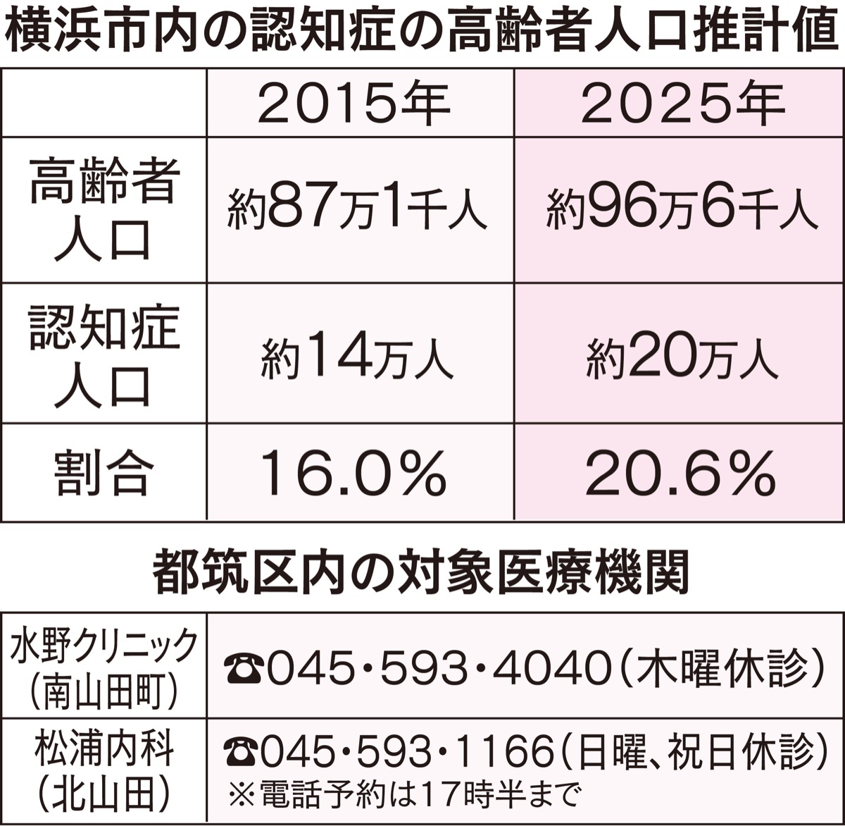 都筑区内で、もの忘れ検診を受けることができる医療機関は、水野クリニック(南山田町4258、【電話】045・593・4040)と松浦内科(北山田1の7の1ソニックス171の101、【電話】045・593・1166)の2カ所。