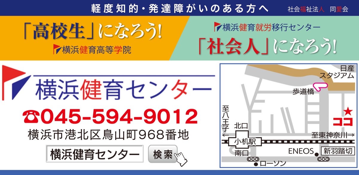 JR横浜線小机駅徒歩5分、社会福祉法人同愛会運営・横浜健育センター内「横浜健育高等学院」は、軽い知的・発達障がいのある人を対象に高卒資格取得支援を行っている学校だ。現在令和3年度新入生募集中。