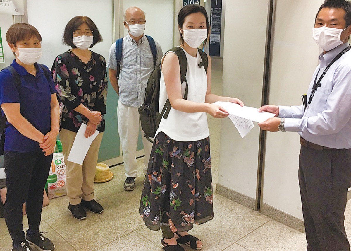 都筑区内の市民団体「つづきからはじめるカジノのない未来ネットワーク」のメンバーらが6月10日、林文子横浜市長に宛てた意見書を都筑区区政推進課担当者に手渡した。