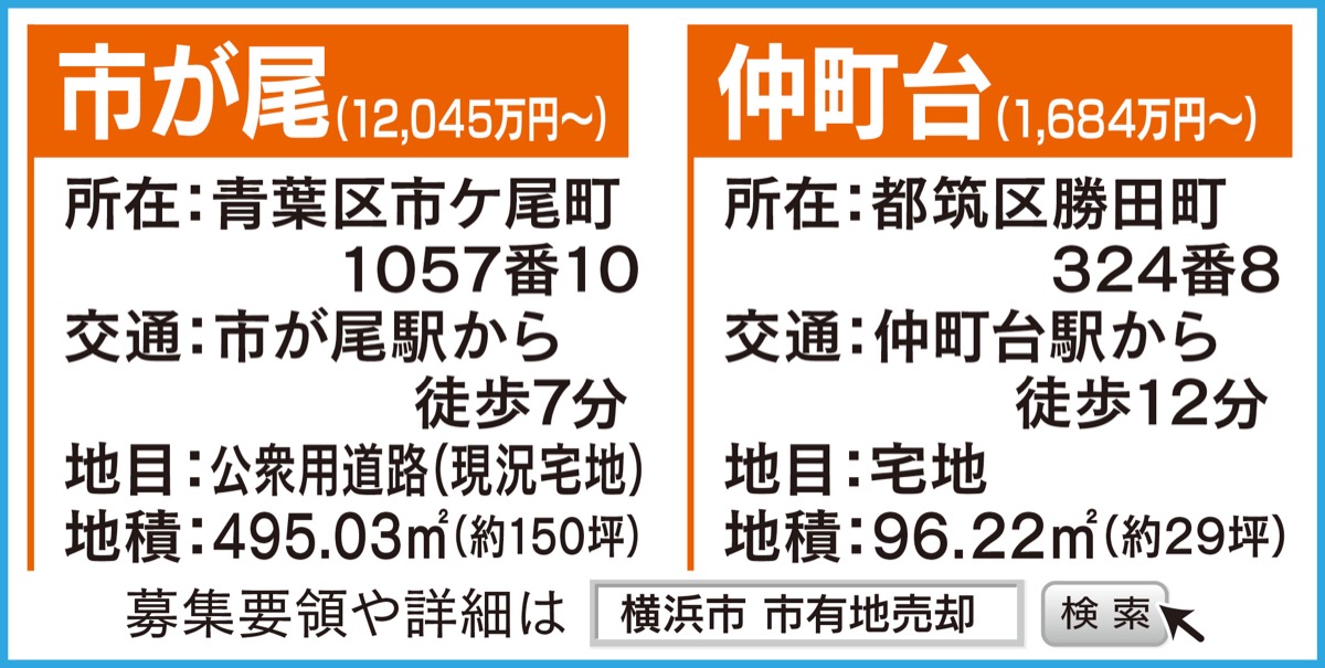 (問)横浜市財政局管財部取得処分課【電話】045・671・2264