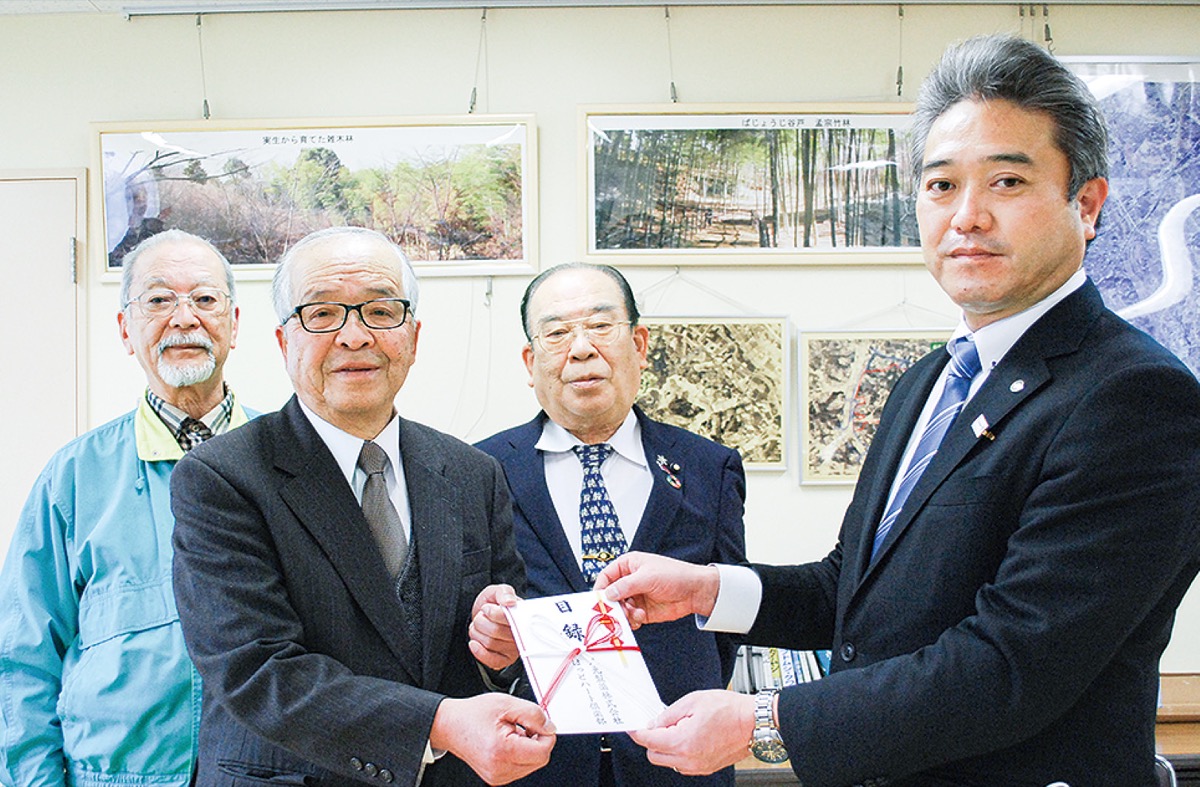 都筑区では都筑中央公園を管理などするNPO法人都筑里山倶楽部(長沼義雄理事長)が選ばれた。1月26日、同社横浜営業所長の石郷岡則明さんが訪れ、目録を手渡した。石郷岡所長によると、都筑区に住む従業員が中央公園を利用していることから、ほっとハート倶楽部に同団体を推薦したという。「評価されて嬉しい。名に恥じないように頑張ります」と長沼理事長は話した。