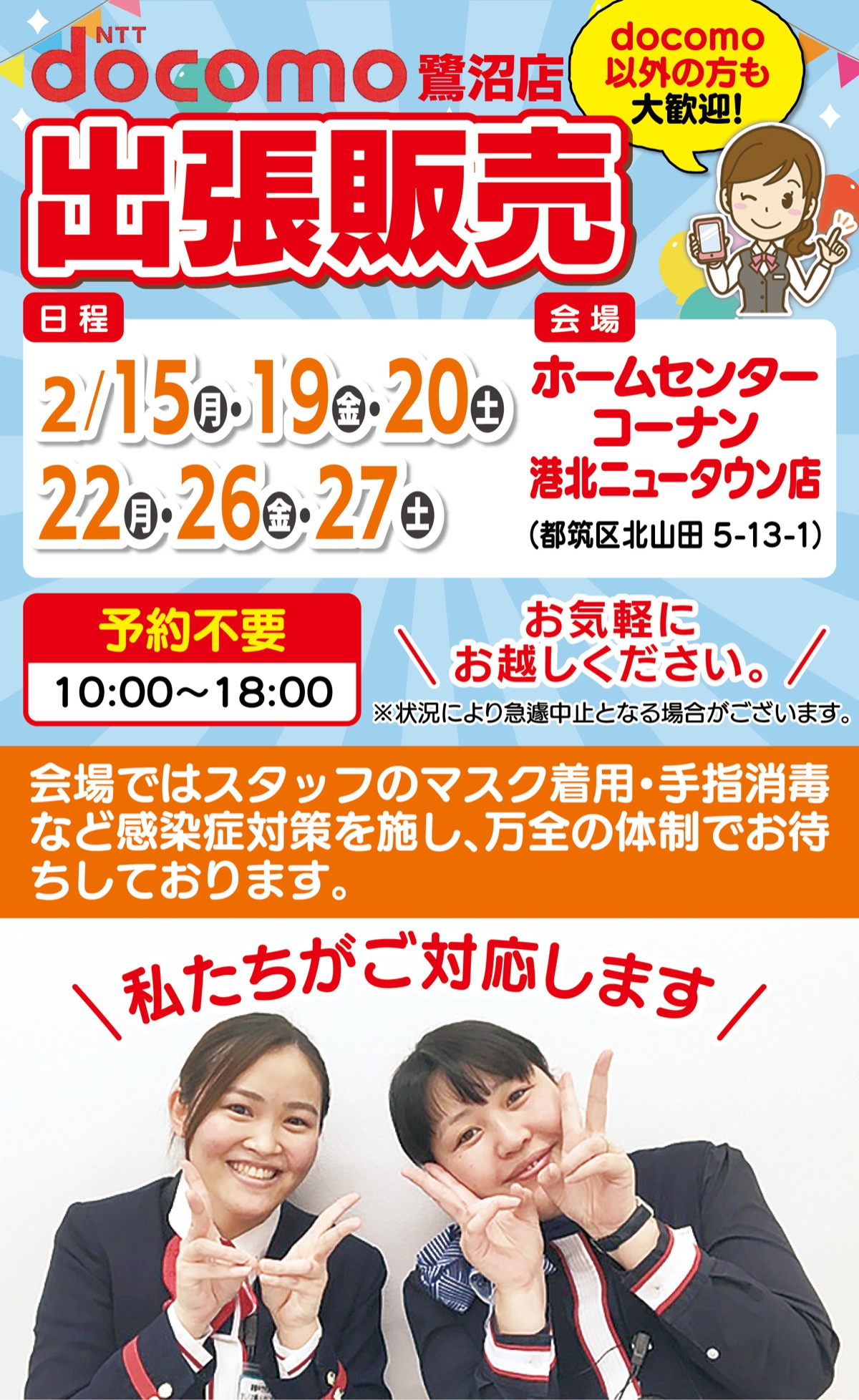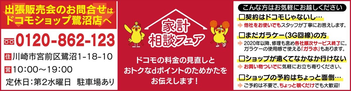 「ガラケーを愛用しているが、友人も使っているスマホに興味がある」「毎月の料金プランが高い気がする」など、携帯電話やスマホに関する悩みがある人に朗報。ホームセンターコーナン港北ニュータウン店で今月、「ドコモショップの出張販売会」が開催されている。日程は左記を参照。