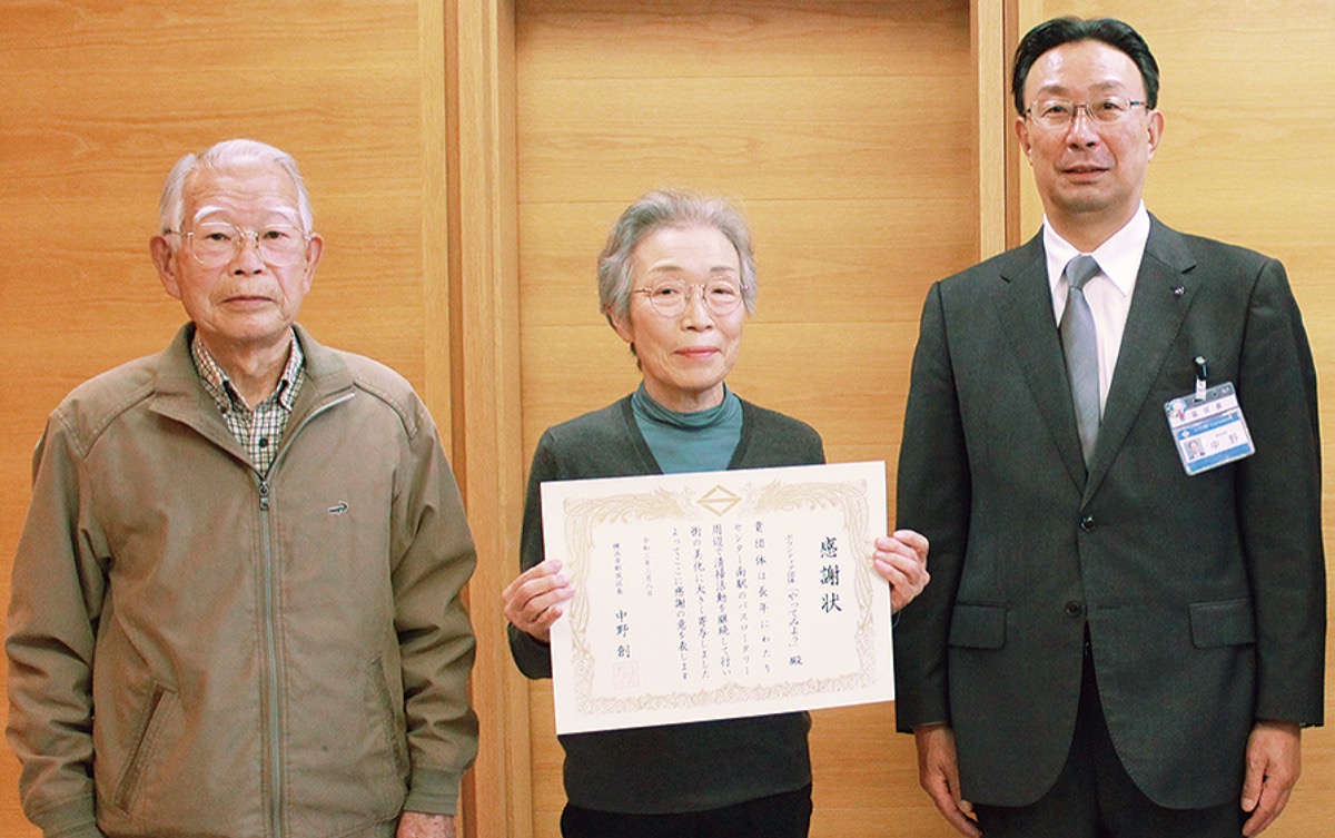 センター南駅バスロータリー周辺で活動する都筑区初のハマロード・サポーター「やってみよう」が昨年、17年の活動に幕を閉じた。8日、これまでの活動に対し中野創区長から感謝状が贈られ、山崎昭子代表(79)は「楽しい時間だった。ここでの繋がりを大切にしていく」と話した。