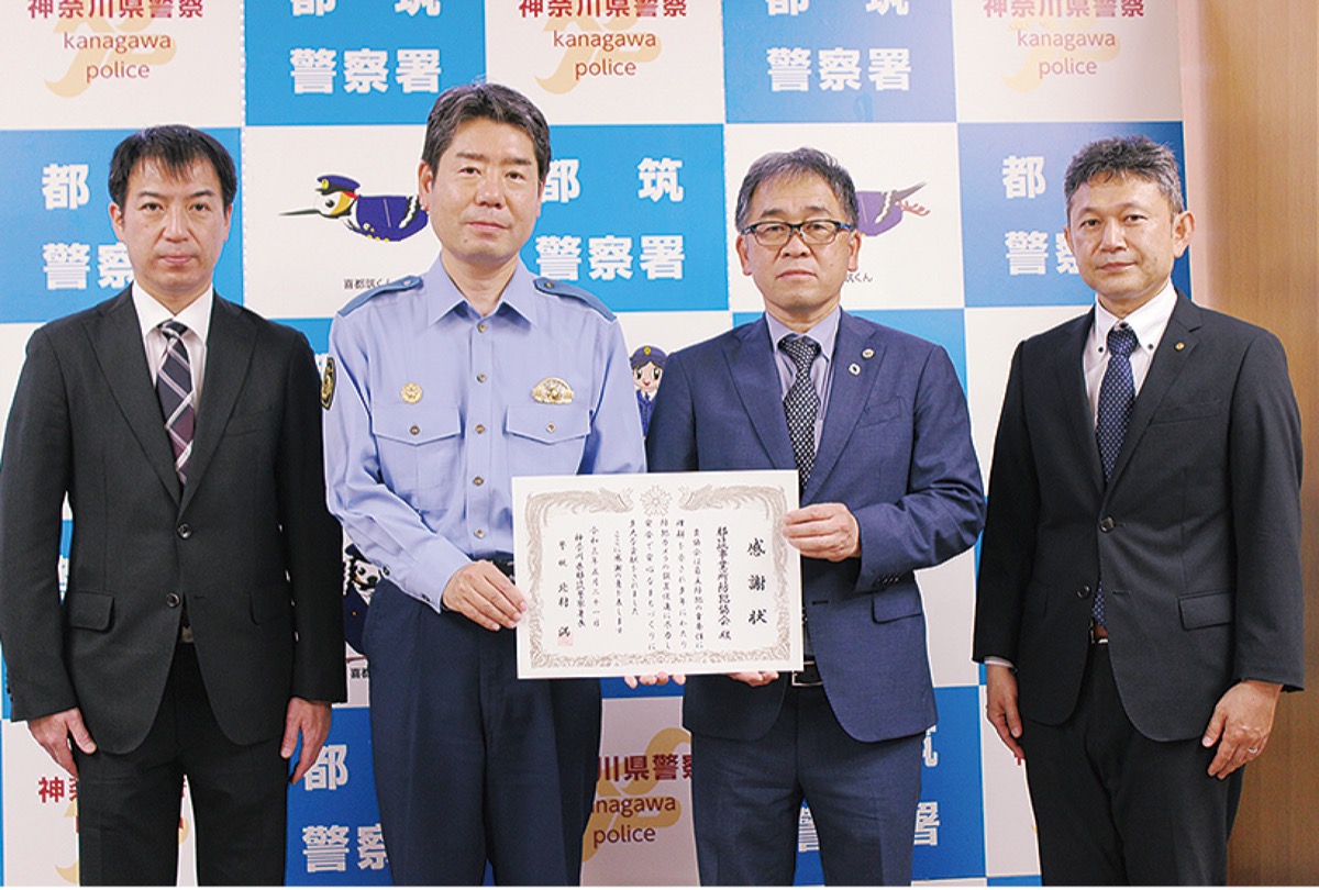 また同日、長年防犯カメラの寄贈を行う都筑事業所防犯協会に対し、都筑署(北村満署長)が感謝状を贈呈した。北村署長は「いつも地元のためにありがとうございます」と感謝を述べた。
