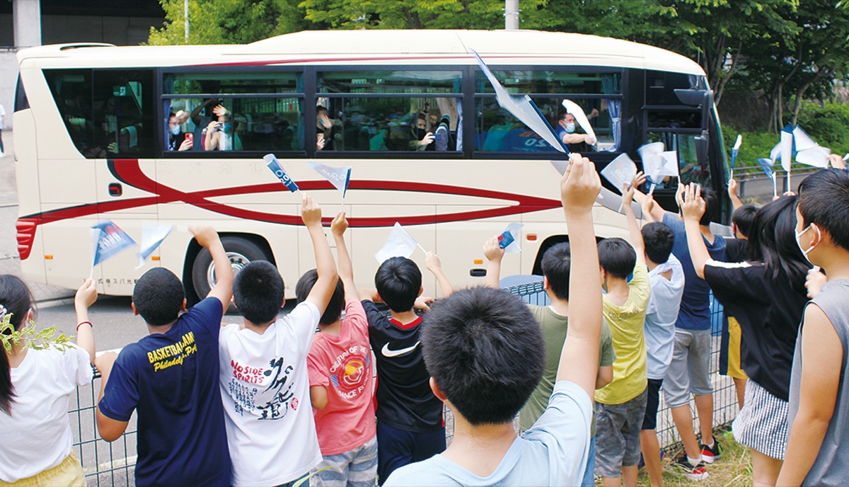 7月上旬から事前キャンプを行っていた同代表チーム。これまでも練習の合間に北山田小学校や牛久保小学校、同校とZoomによる交流などを行ってきた。