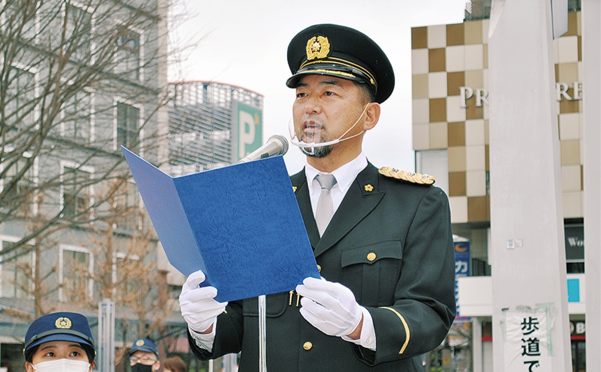 制服に身を包んだ斎藤コーチは「110番通報は緊急電話です」と訴え、緊急でない通報や相談は警察署や警察相談ダイヤル「#9110」を利用するよう、通行人に呼び掛けた。