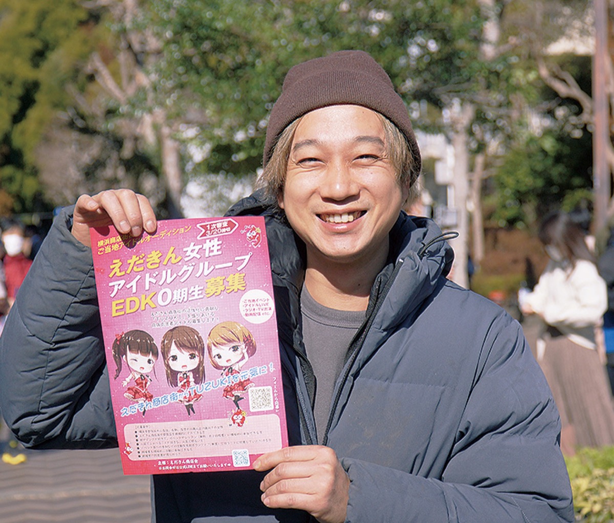 今回のアイドル発掘・育成の取り組みは、区内の商店街などでご当イベントやライブ、ラジオ・テレビ出演、動画配信などを通じて、えだきん商店街を活性化し、都筑区を盛り上げるのが目的。
