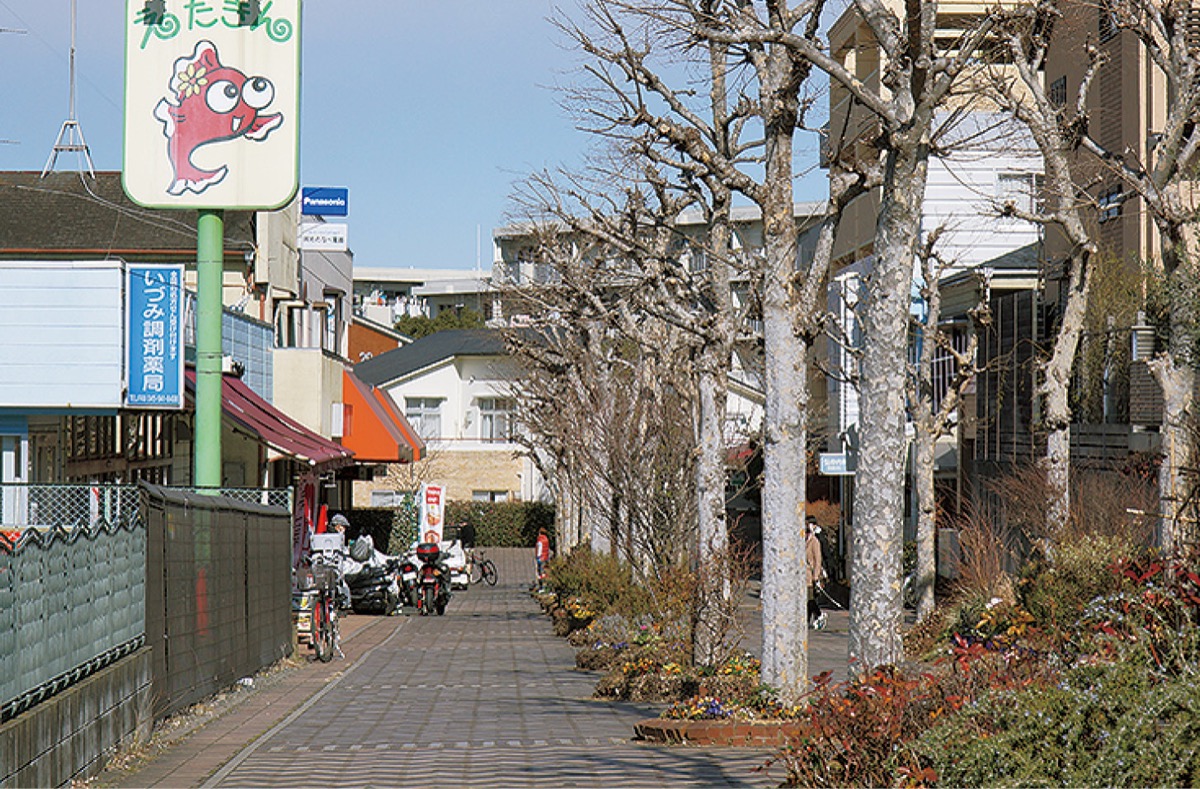 えだきん商店街は、集合住宅と閑静な戸建て住宅に囲まれ、遊歩道沿いに約20店舗が軒を連ねる。全国的に商店街の衰退が社会問題化する中、同商店街では、ゆるキャラ「えだきんぎょ」を打ち出したり、季節のイベントを積極的に開催したりと、活性化に取り組んでいる。