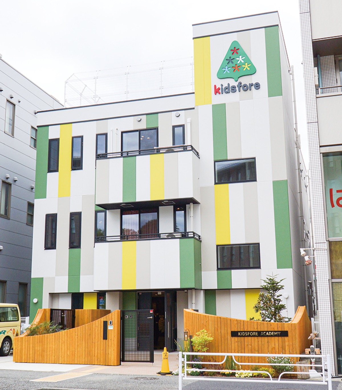 これまでの横浜保育室「キッズフォレアカデミー」を移転させる形で、認可保育所として新たに施設を整備した。新施設は鉄骨造の地上3階建で屋上付き。敷地面積は約401平方メートル、延床面積は約678平方メートル。