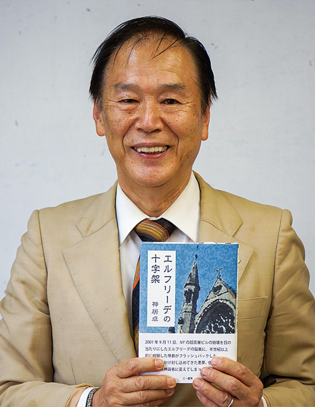 川和町で電気はんだコテなどの工業用電機製品の製造業「ダイヤ電機(株)」を営む加藤卓郎(たかお)(筆名=神居卓(かむいたかし))さんが執筆した反戦小説『エルフリーデの十字架』がこのほど、三一書房から出版された。ロシアによるウクライナ侵攻前に発行されたが、今の情勢を予見するかのように「戦争に駆り立てる独裁者の出現」や「プロパンガンダに煽られる国民」への恐怖を綴っている。