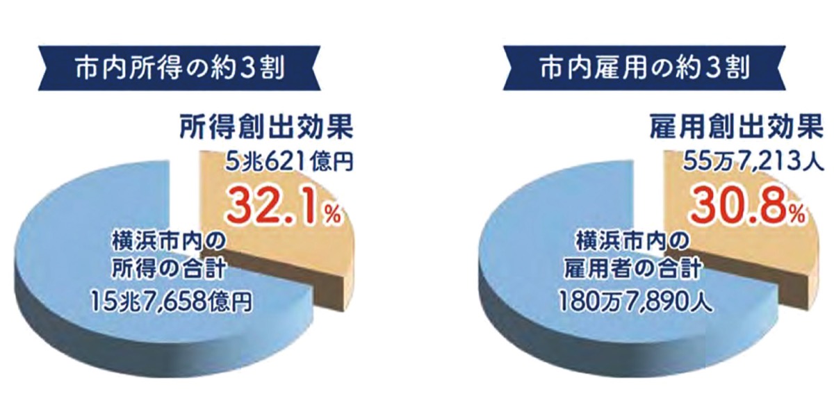 経済波及効果を試算すると、所得創出効果は年間5兆621億円で市内所得の32・1%を創出し、雇用創出効果は年間55万7213人で市内の雇用者の30・8%を創出していると試算した。
