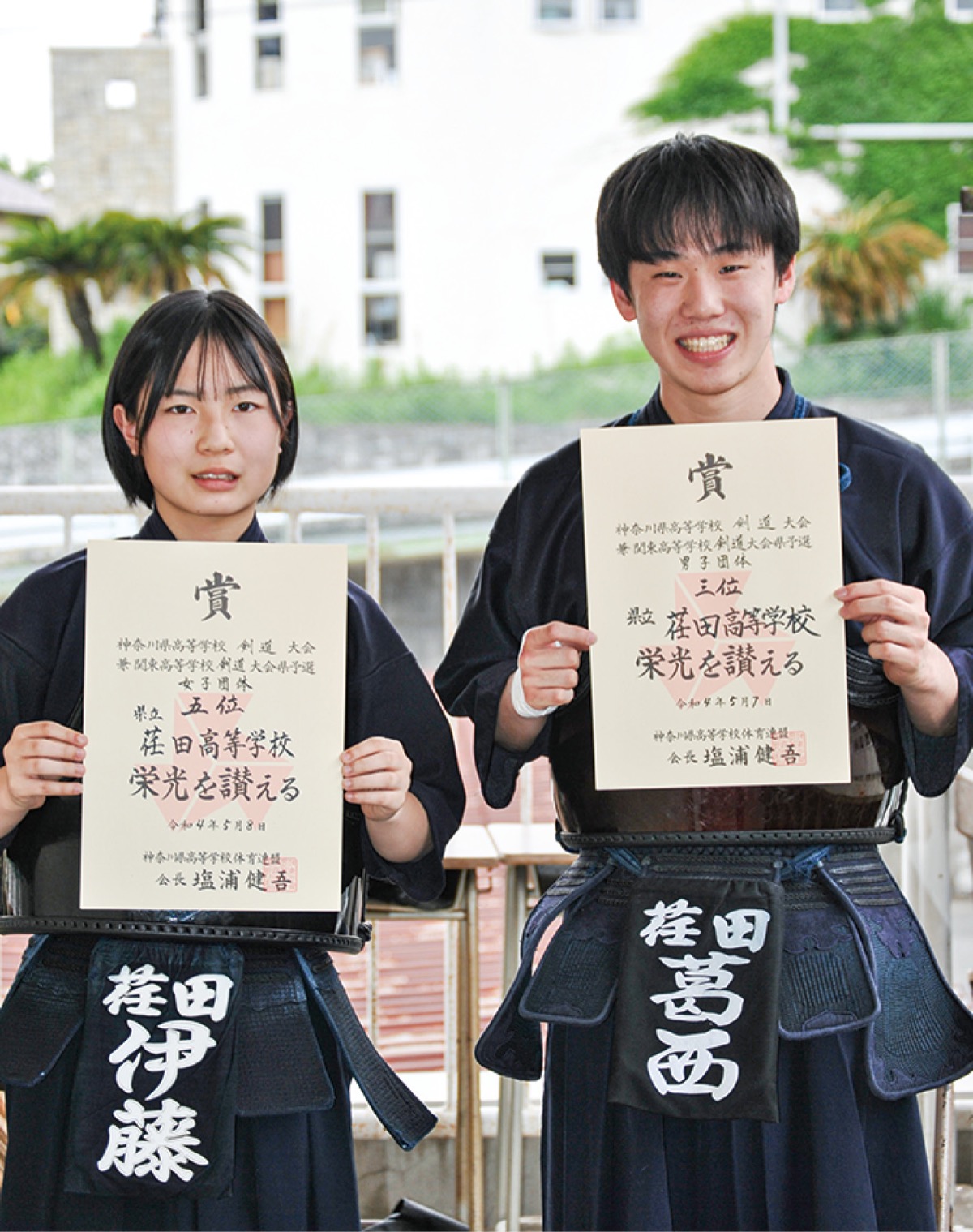 荏田高校剣道部が5月7日、8日に川崎市で行われた関東高等学校剣道大会県予選の団体戦に出場し、男女揃って6月に群馬県で行われる関東大会への出場権を2年連続で獲得した。