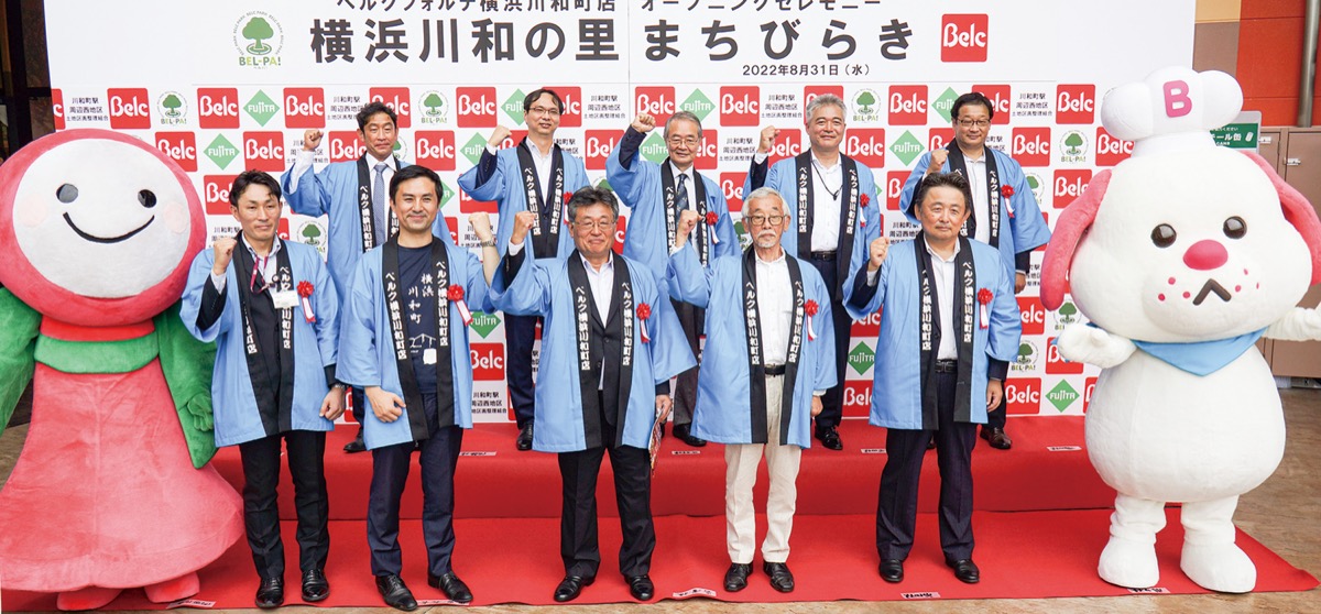 土地区画整理事業による開発整備が進む川和町に大型商業施設「フォルテ横浜川和町」が完成し、8月31日にキー店舗となるスーパーマーケット「ベルク」がオープンした。この日、まちびらきのオープニングセレモニーが開かれ、同社や地元の代表者らが出席し、地域にとって待望の施設の誕生を祝った。