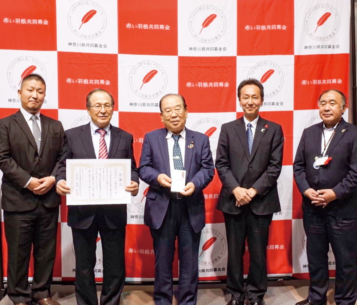 古紙などの資源回収やリサイクル処理を行う川和町の(有)大興資源(小塚敏文社長)が1日、都筑区社会福祉協議会を訪れ、赤い羽根共同募金として25万7450円を寄付した。