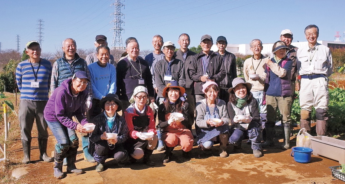 区内在住の60歳以上のシニア世代が農作業を行いながら親睦を深める「シニア楽農園」。都筑区誕生10周年事業としてスタートし、今年で19年目を迎える。現在は約70人のメンバーが3チームに分かれて週1回の活動を楽しんでいる。