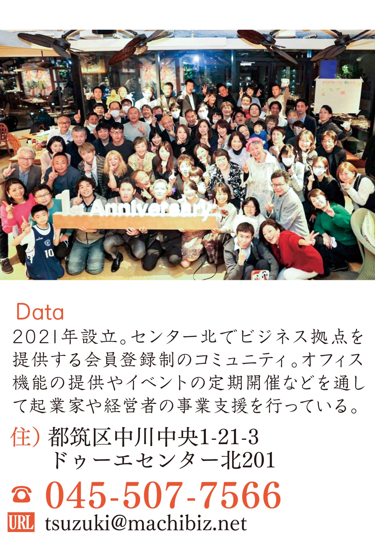 カメラマン、法律家、不動産業者、パーソナルトレーナー、弁護士――。所属する会員全てがその道を究めたエキスパートであることを生かし、今後はビジネス拠点としてだけでなく、地域の案内所としての一面も広げていく。「生活のなかで困ったことがあれば気軽にご相談を」と小杉代表。会員一同、大きな「都筑愛」を原動力に今年も全力で突き進む。
